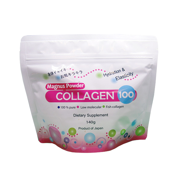 マグナスのコラーゲンパウダーは、純度100%の超低分子フィッシュコラーゲンペプチド(吸収しやすくしたもの)で、体内ですばやく吸収されます。コラーゲンは全身を潤すと共に、しなやかな体づくりに重要な役割を担っています。